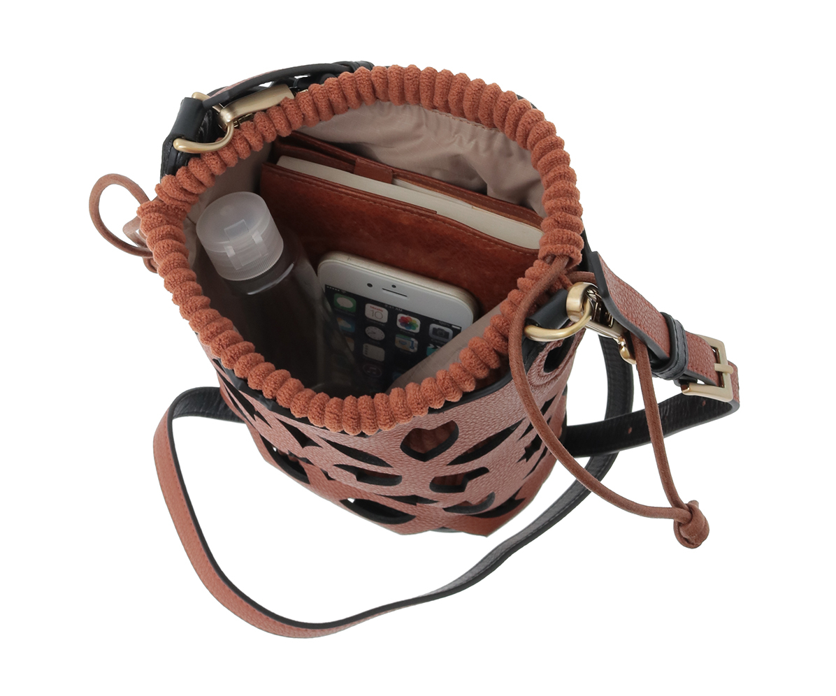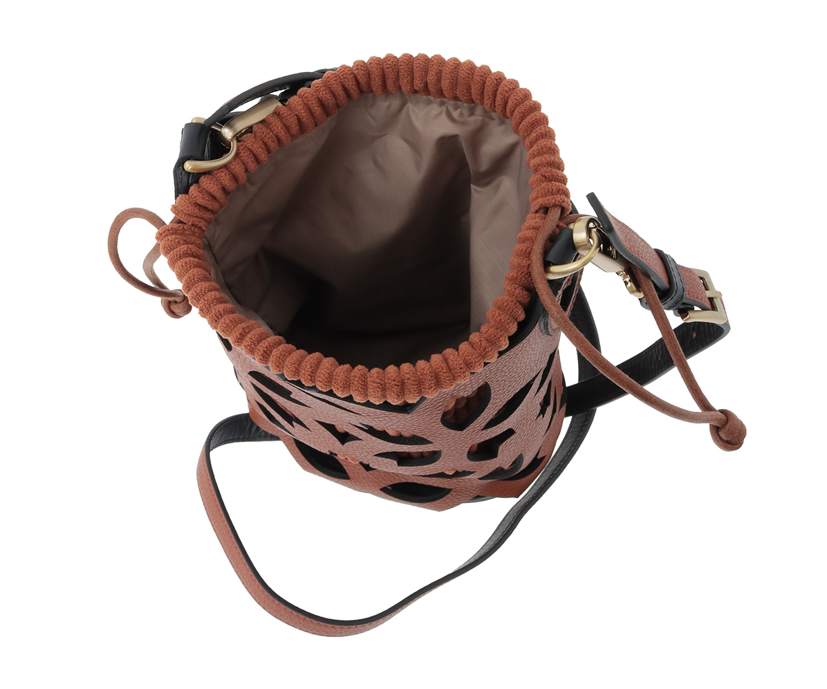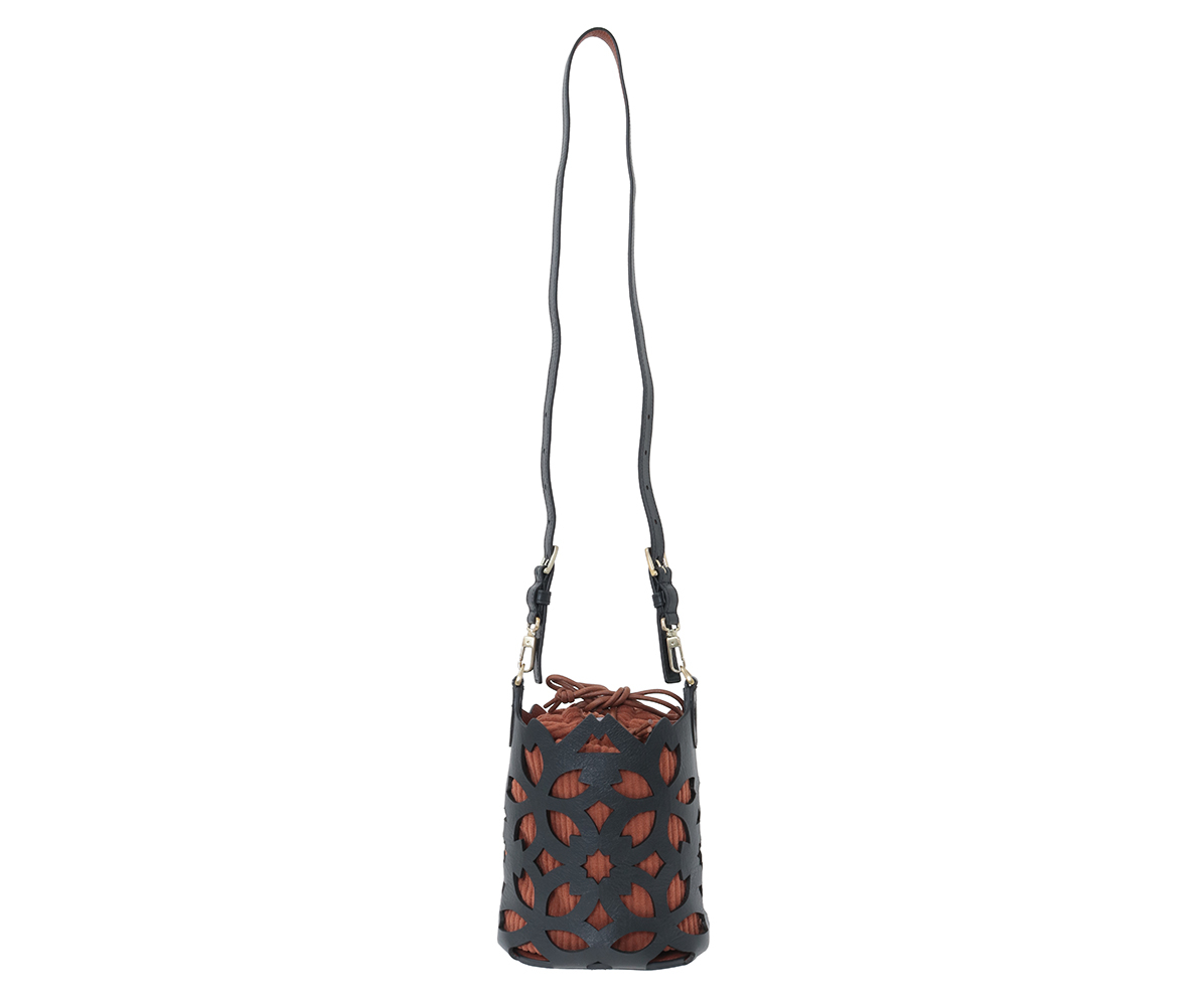 本革同士を貼り合わせ、大胆なカッティングを施した軽快なリバーシブルショルダーバッグ。