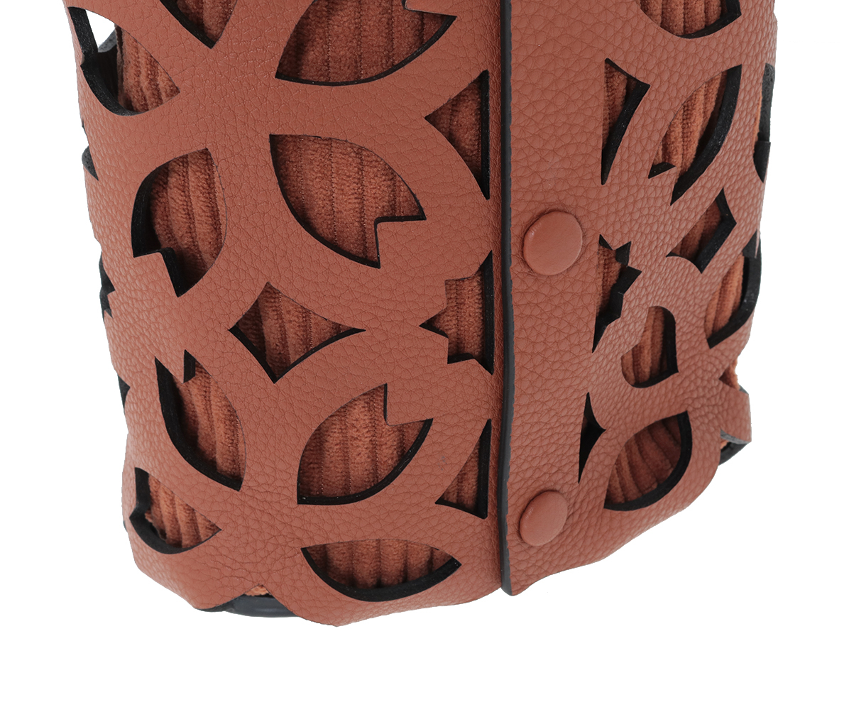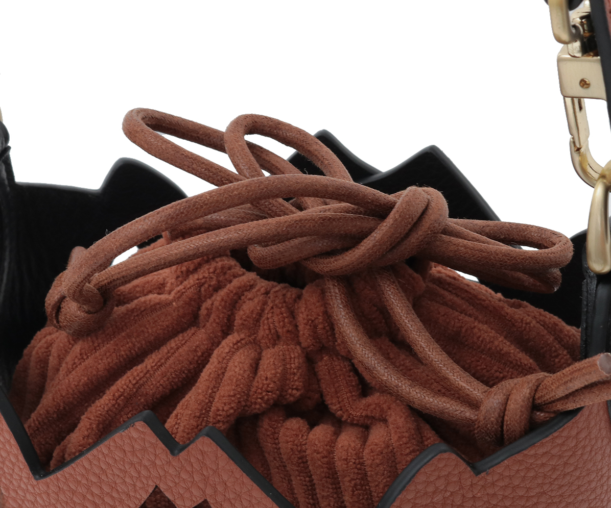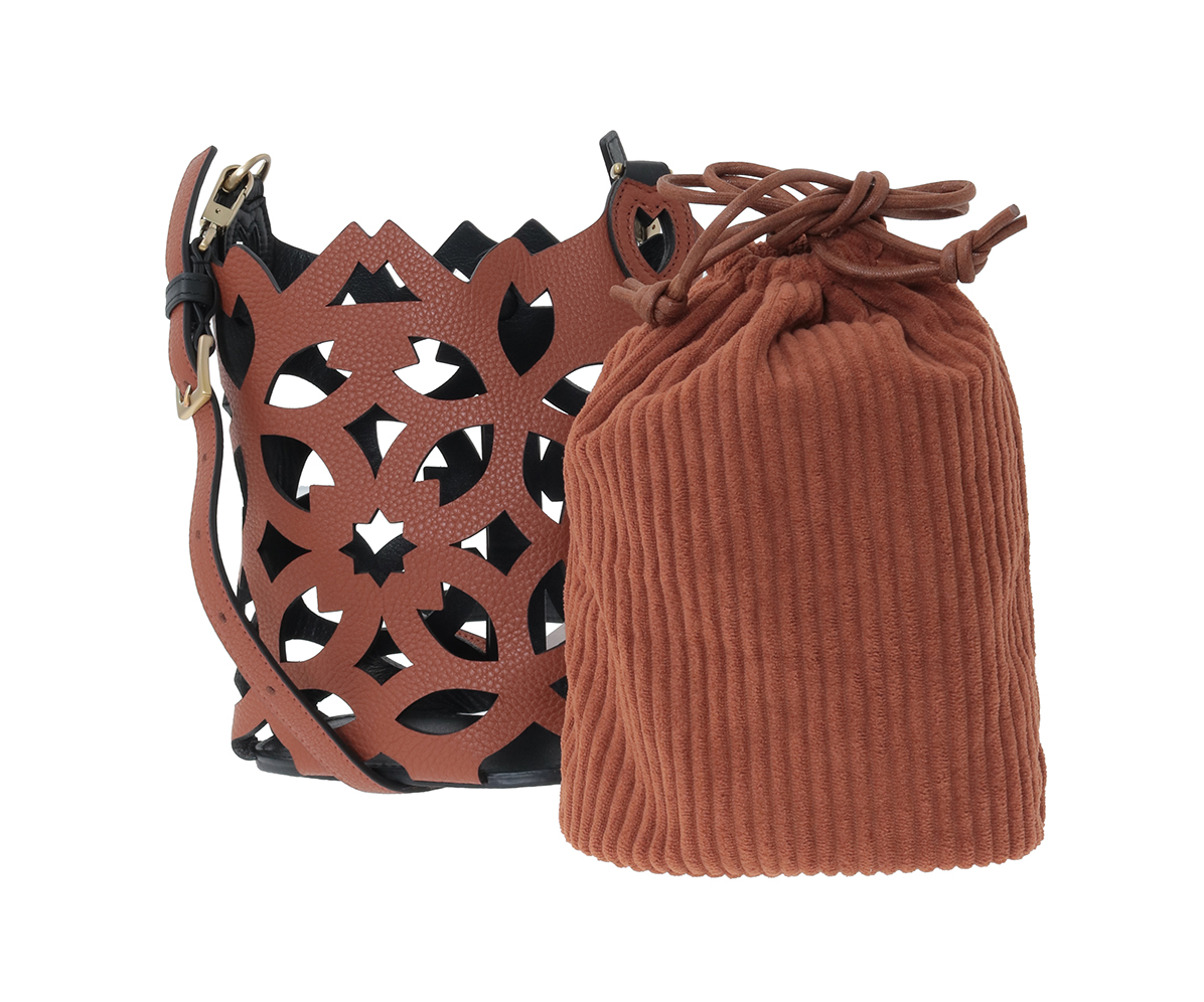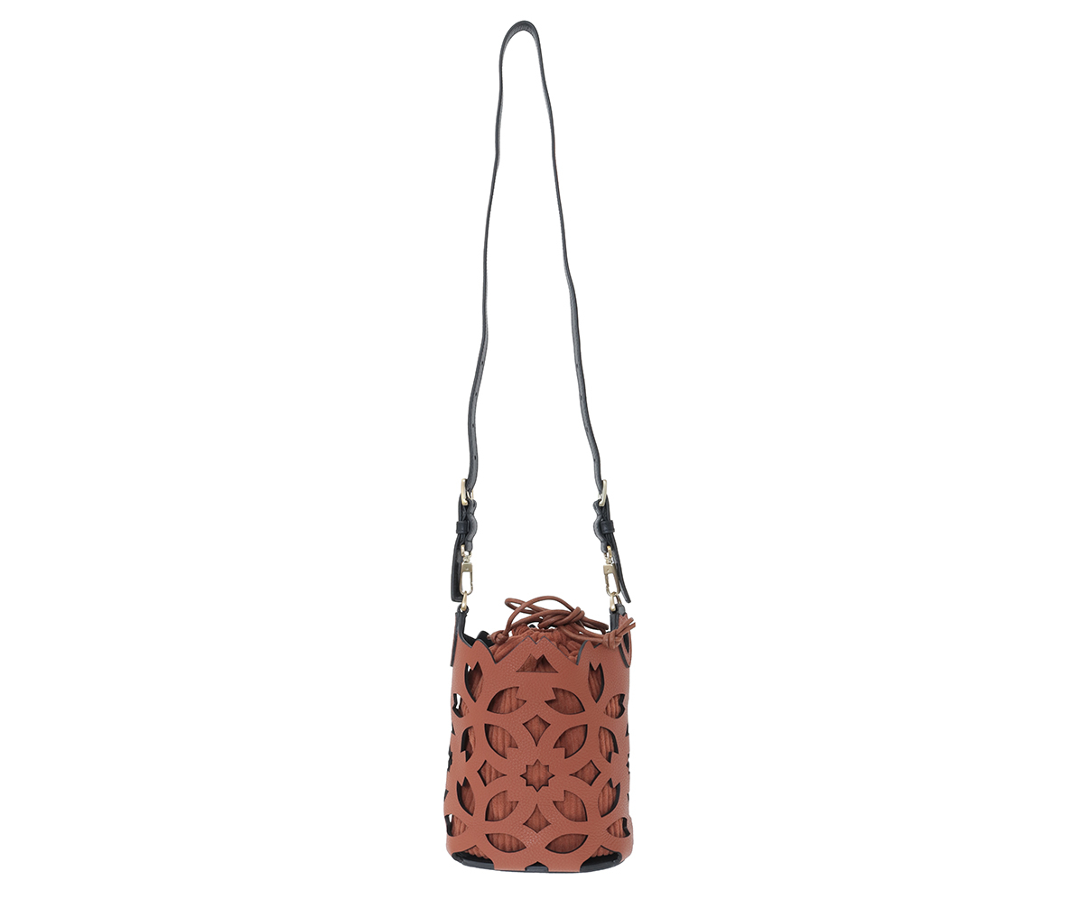 本革同士を貼り合わせ、大胆なカッティングを施した軽快なリバーシブルショルダーバッグ。